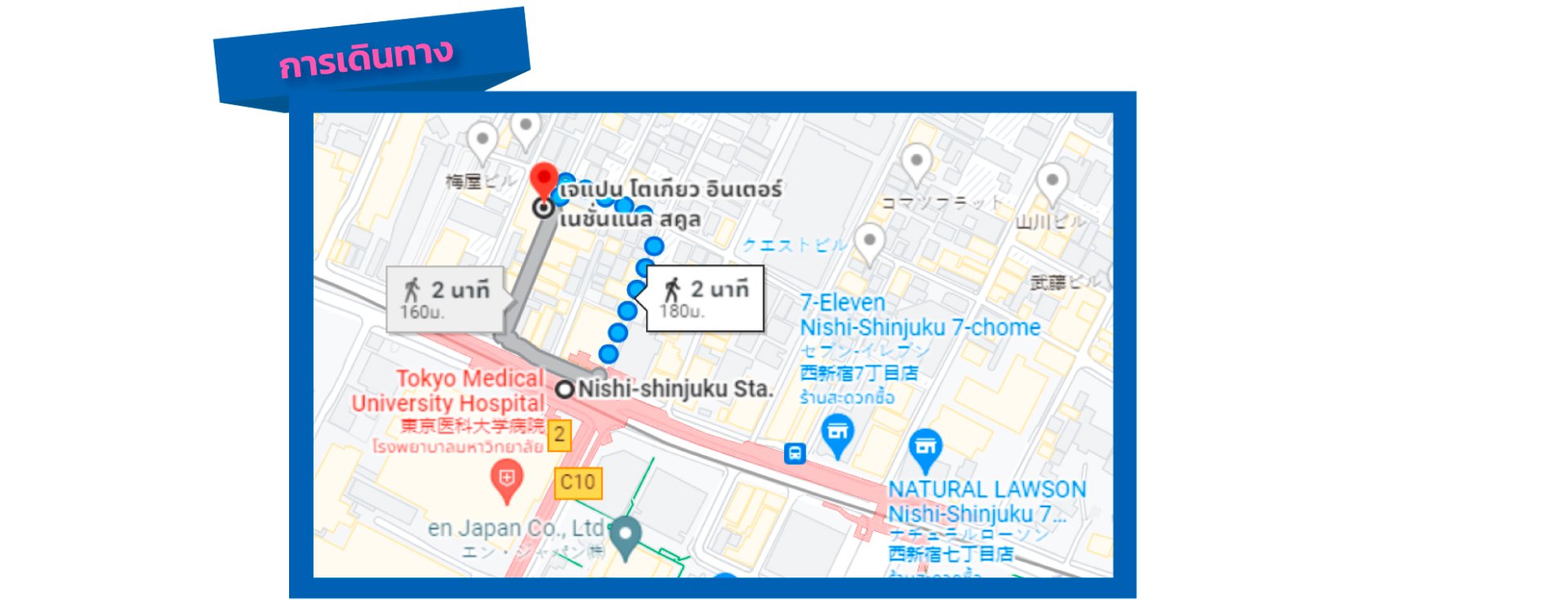 โรงเรียนตั้งอยู่กลางโตเกียวที่ตึกโฮชิโนะ ชั้น 1-2 เดินทางง่ายและสะดวกสบาย